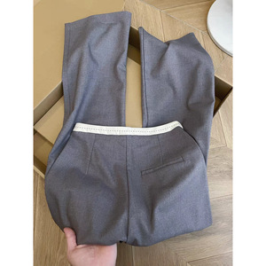 CHAO级推荐!灰色极简撞色设计感西装阔腿裤女秋季新款高腰休闲裤