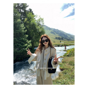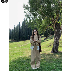 早秋超火高级感巨好看大方得体穿搭小香风假两件夹克阔腿裤套装女