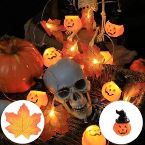 跨境LED灯串万圣节仿真枫叶南瓜灯庭院户外节日装饰彩灯圣诞彩灯