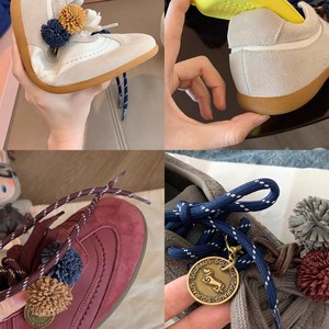 牛皮版~超火真皮撞色鞋带德训鞋女秋新款内增高休闲鞋运动阿甘鞋