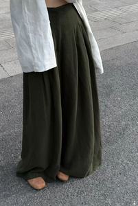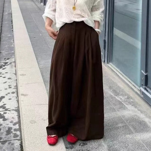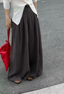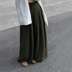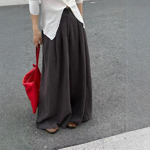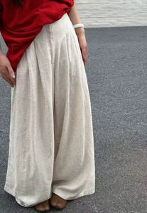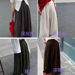早秋款韩版宽松气质显瘦汉麻半松紧腰捏褶加长阔腿裤百搭休闲裤女