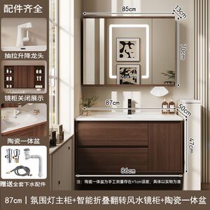 胡桃木丨智能折叠风水镜+人体氛围灯柜-【87CM空间可装】陶瓷一体盆(可切割)