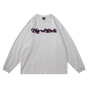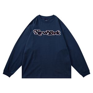 秋季290克重磅毛巾绣英文长袖T恤男士美式潮牌复古套头打底衫