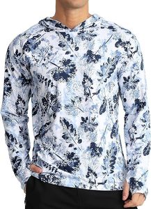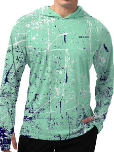 2025新款跨境男款短袖条纹印花长袖连帽卫衣露营钓鱼防晒夏季