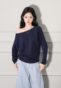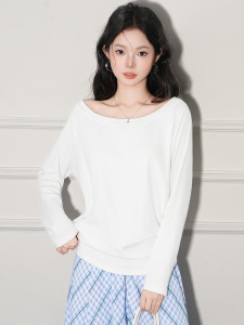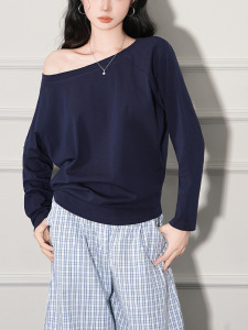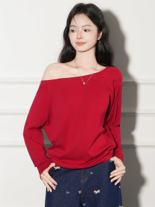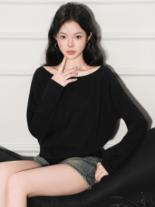 辣妹斜肩长袖t恤女2025秋季新款宽松显瘦一字肩高级感上衣