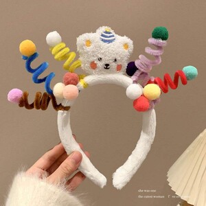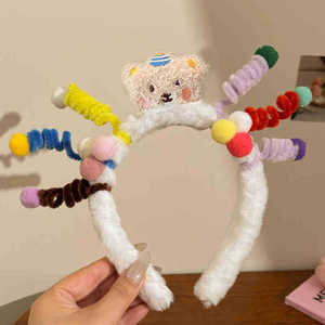 可爱卡通毛绒洗脸专用发箍女秋冬搞怪小熊头箍高颅顶压发发卡头饰