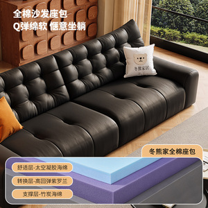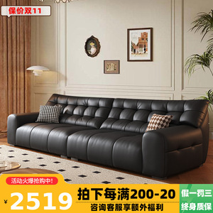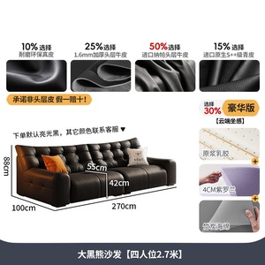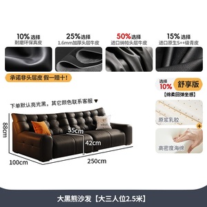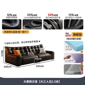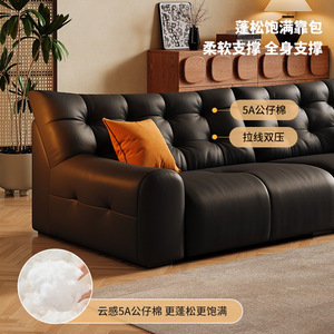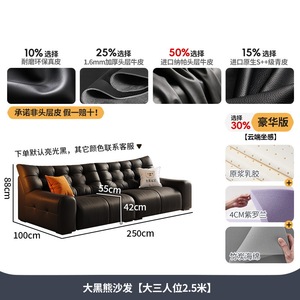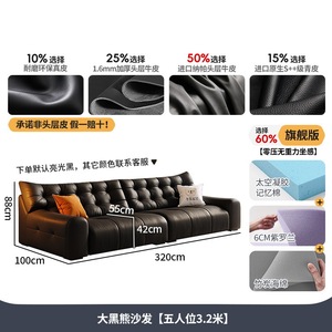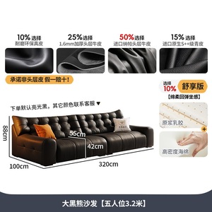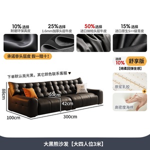 桐语特极简新款大黑熊沙发头层牛皮客厅意式中古风高靠背真皮沙发