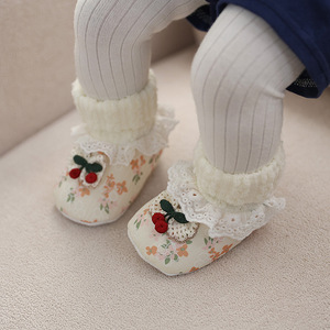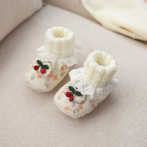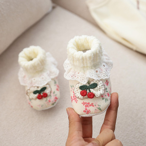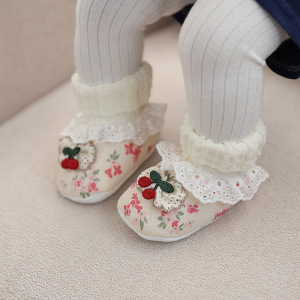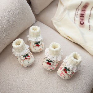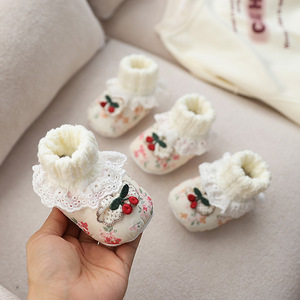 春秋冬婴儿宝宝公主鞋0-1岁软布底新生儿百天周岁布鞋不掉跟鞋袜