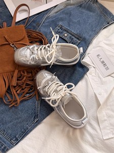 2025秋季内增高5cm芭蕾德训鞋女软皮韩版风玛丽珍银色单鞋休闲鞋