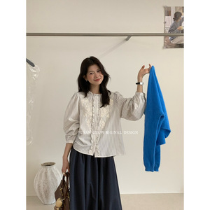 SUSAN-开秋必拿国风精致刺绣元素条纹小衫TS200