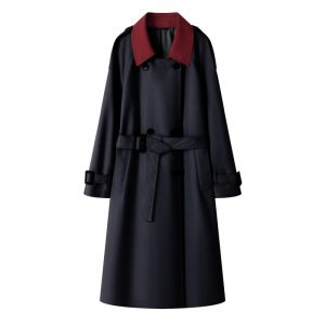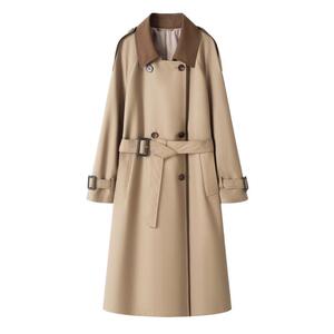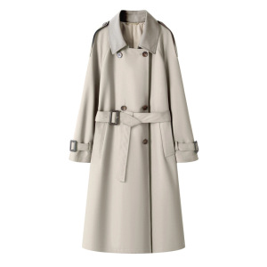 系带宽松型落肩袖气质韩版设计师女时尚纯色秋季风衣外套女