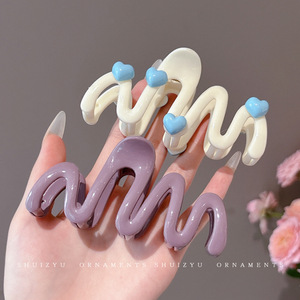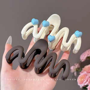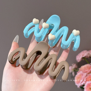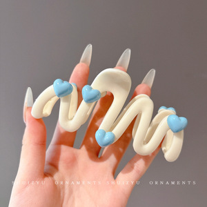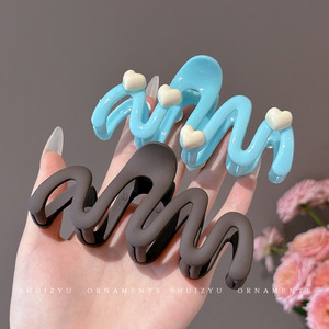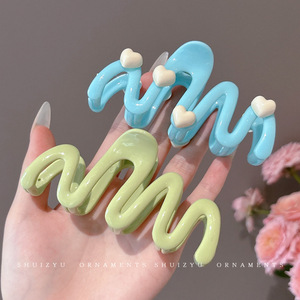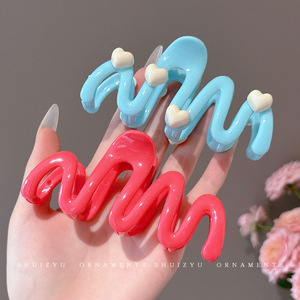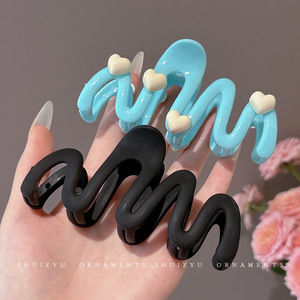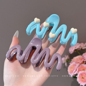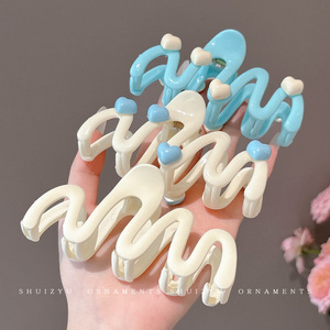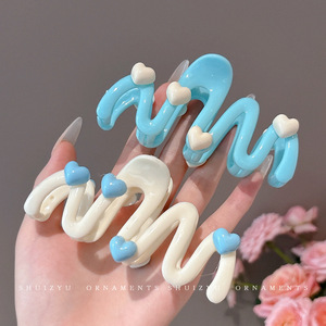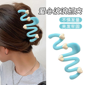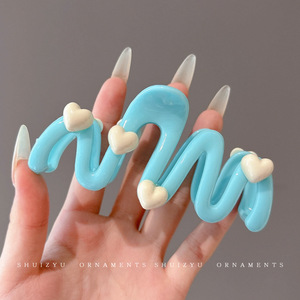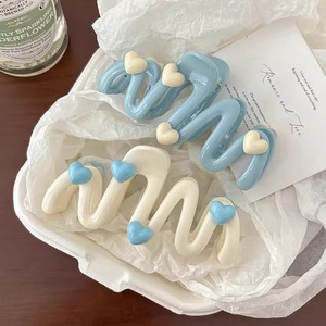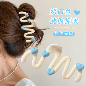 奶油蓝爱心波浪发夹女后脑勺盘发抓夹鲨鱼夹子可爱发卡头饰夏清新