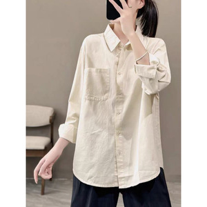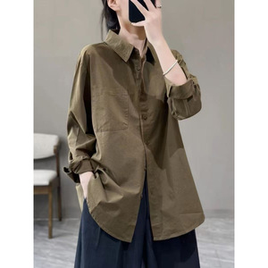 文艺复古纯色大码宽松长袖衬衫女2025秋装基础款百搭港风女士衬衣