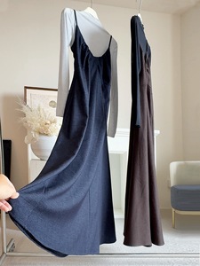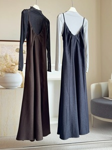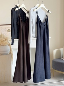法式高级感吊带连衣裙套装女2025秋新款气质显瘦打底衫长裙两件套