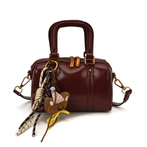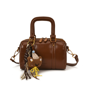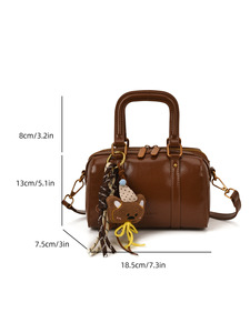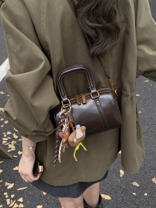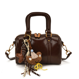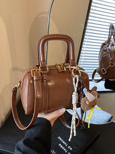 严选女包2025秋新款油蜡PU斜挎包复古女通勤手提包枕头包单肩包