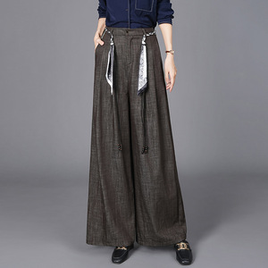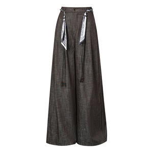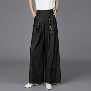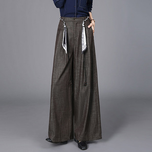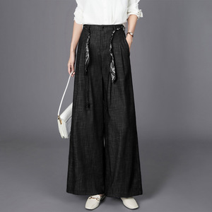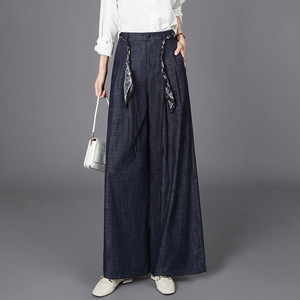 时尚筒喇叭裤休闲牛仔裤女2025年秋季新款高腰宽松显瘦丝带阔腿裤