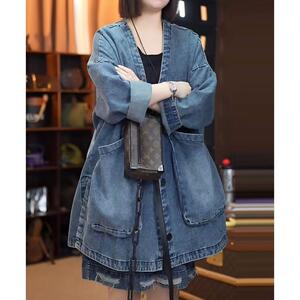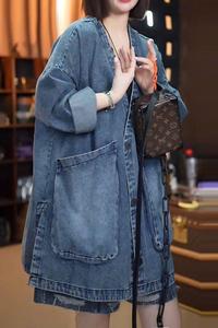 欧货阔版大口袋固色牛仔外套大码遮肉遮胯宽松范外穿2025秋新