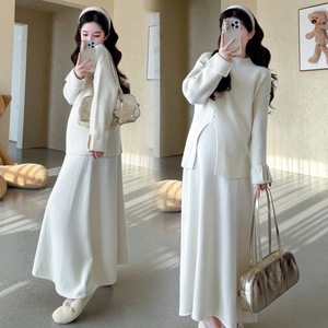 孕妇装2025秋冬季新款小香风韩版套头开叉毛衣打底半身裙孕妇套装