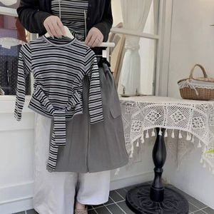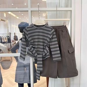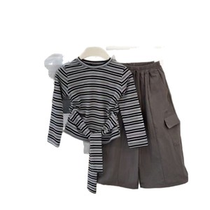 女童套装洋气镂条纹打底上衣阔腿裤子套装中小童休闲时尚套装潮酷