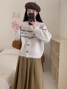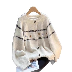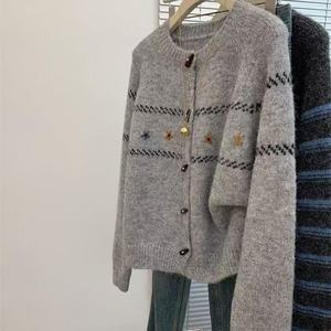 2025春秋新款提花刺绣复古牛角扣优质毛衣女百搭减龄针织开衫外套