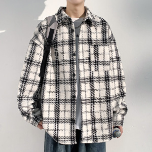 NASA小香风格纹长袖衬衫外套2025春秋季新款宽松休闲情侣翻领夹克