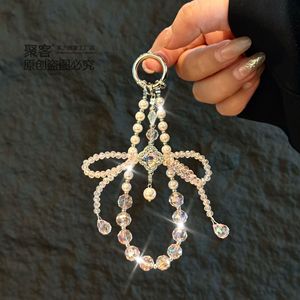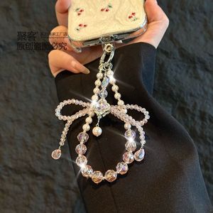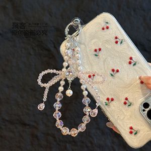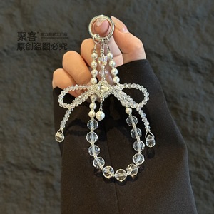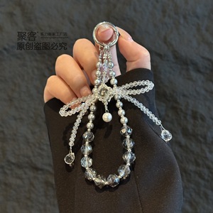 高级感立体水晶蝴蝶结挂链手机链条 钥匙珍珠手机挂绳手腕款批发