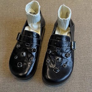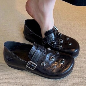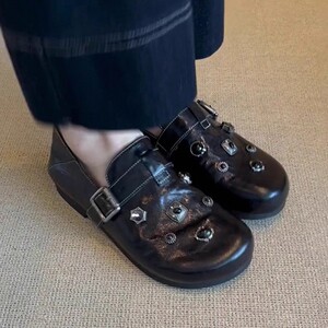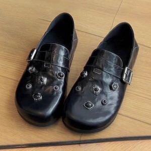 羊皮版~厚底勃肯鞋女舒适不累脚小皮鞋子黑色博肯鞋全包软底单鞋