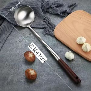 304食品级不锈钢炒菜勺子家用长柄汤勺加厚家用锅铲炒菜铲子木柄