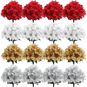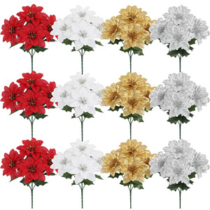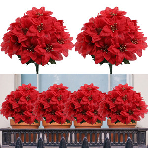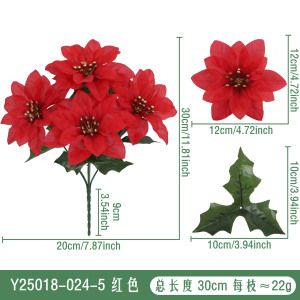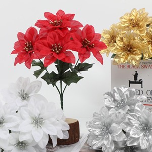 跨境仿真花圣诞花一品红假花圣诞节绢花家居道具摆件装饰配件批发