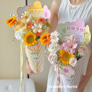 新款教师节快乐一体定型片花束包装纸手工diy包花材料批发