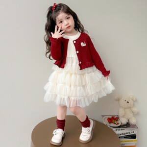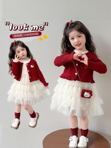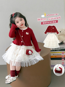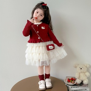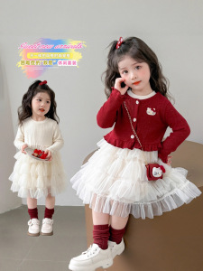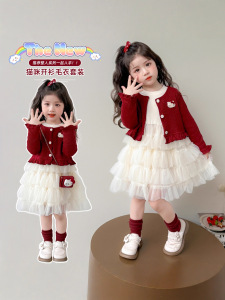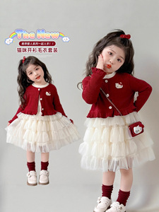 女童秋装连衣裙套装2025新款洋气时尚儿童猫咪针织开衫秋季两件套