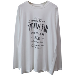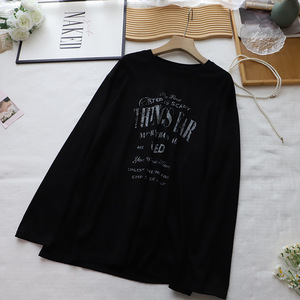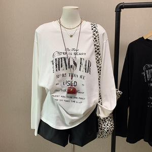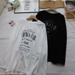 [比正]2025秋季新韩版字母大码休闲百搭慵懒中长款长袖T恤女4839