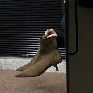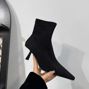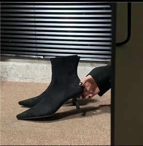 2025新款法式绒面瘦瘦靴单靴及裸靴细跟高跟尖头弹力短靴女