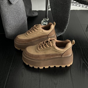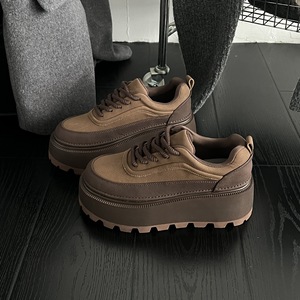 2025春秋款原创真皮复古拼色厚底松糕鞋头层牛皮小个子增高女单鞋
