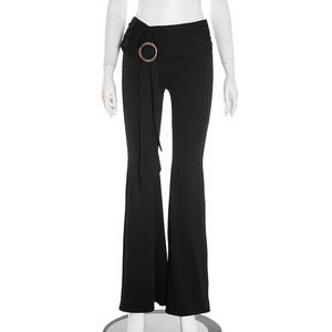 Q25PT259跨境夏秋新款女装百搭休闲低腰修身显瘦圆环装饰微喇裤