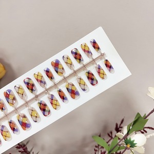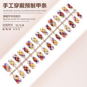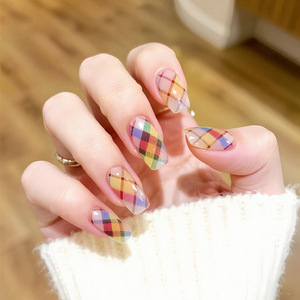 S286-多彩格纹穿戴甲显白预制甲成品温柔清透小香风可拆卸甲片