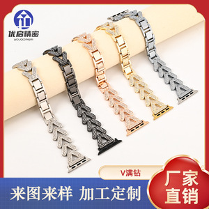 2025新款时尚高级感V满钻金属表带 传统不锈钢手表带表链