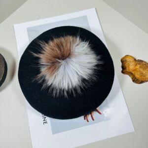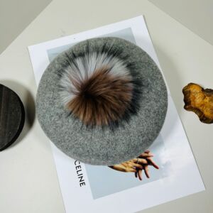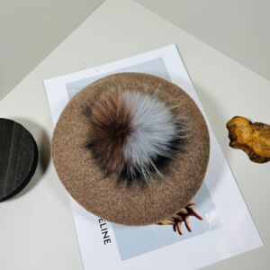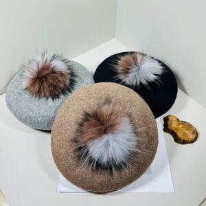 日本CA4LA同款三色毛球装饰澳洲羊毛贝雷帽女时尚百搭显脸小大头