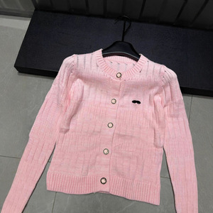 25年秋季新款香家logo纽扣镂空针织长袖单排扣开衫宽松百搭女毛衣