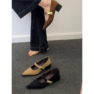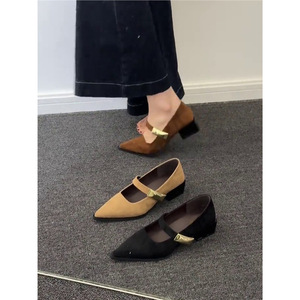 羊皮版~优雅气质粗跟一字带通勤高级感法式简约尖头女款浅口单鞋