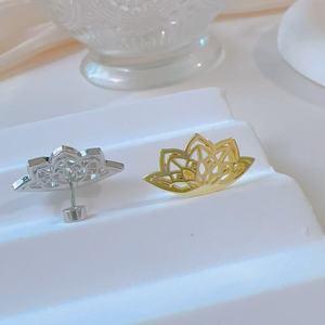 新款时尚气质玫瑰金莲花造型耳环耳钉首饰欧美跨境爆款真金铜耳饰