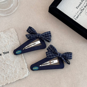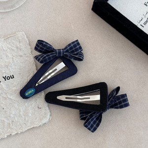 甜美撞色格纹三角蝴蝶结发夹女生2025早秋新款简约发卡后脑勺发饰