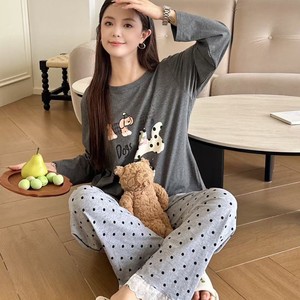 秋季新款ins少女时光蕾丝卡通冰瓷棉长袖甜美圆领休闲家居服套装