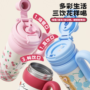 保温杯女生高颜值2025新款大容量吸管杯子上学专用外出便携冰霸杯