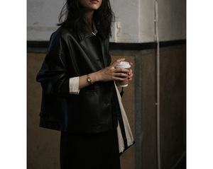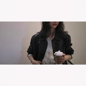 预售春秋时尚法式短款皮衣秋季新款复古休闲外套女