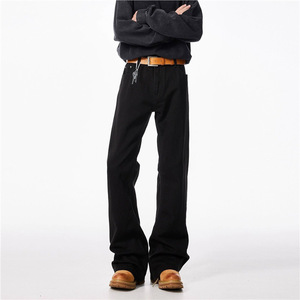 弯刀微喇cleanfit黑色牛仔裤男秋季高街潮牌vibe宽松直筒