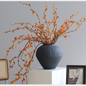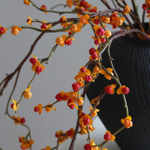南蛇藤仿真花禅意茶室线条插花蛇藤果室内家居摆件假花发财小柿子