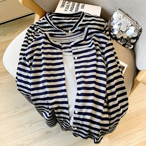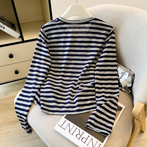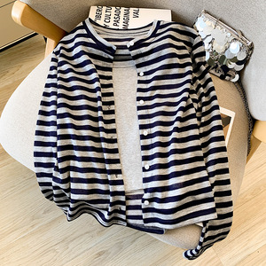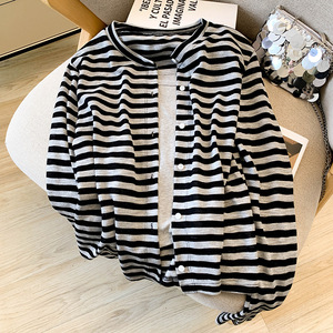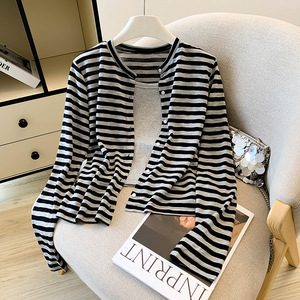 十三行高货爆款~条纹圆领针织开衫女2025早秋叠穿吊带两件套上衣