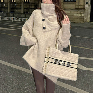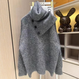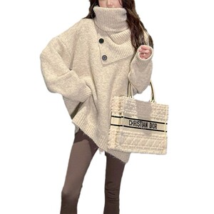 冬季独特超好看针织衫洋气别致上衣外套新年红色可拆卸围脖毛衣女