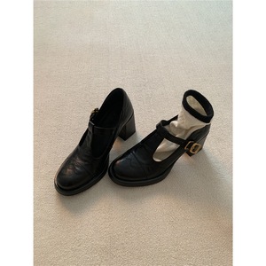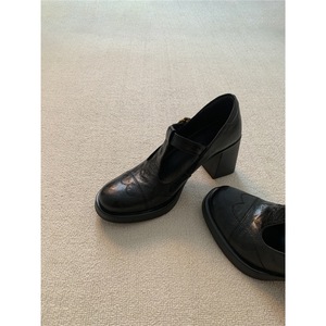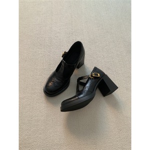 羊皮版~高跟玛丽珍鞋T字扣带复古风圆头粗跟小皮鞋女通勤气质单鞋